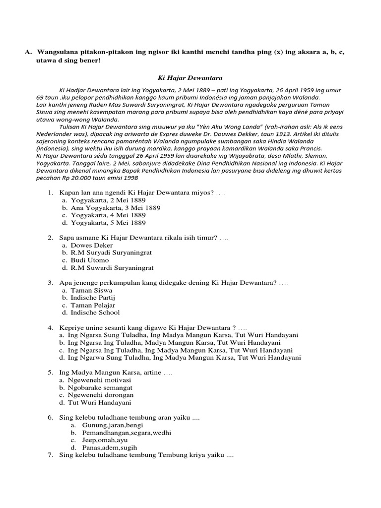 Bahwa kenapa kok tanggal 2 Mei. Berikut ini adalah Soal USBN Bahasa Jawa SMP Tahun 2022 Kurikulum 2013 Revisi. Bangsa kang sejahtera lan makmur.